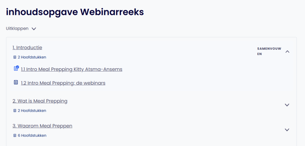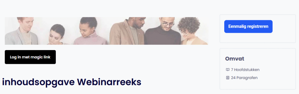 Je ziet nu niet alleen de inhoudsopgave van de webinars en hun hoofstukken, maar nu je ingelogd bent.