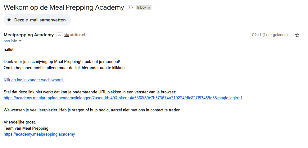 Als je de registratie hebt voltooid ontvang je een e-mail ter bevestiging die tevens een link bevat waarmee je direct kan inloggen zonder een wachtwoord te hoeven gebruiken. Ontvang je deze e-mail niet, kijk dan ook in je SPAM folder of je map Ongewenste E-mail.