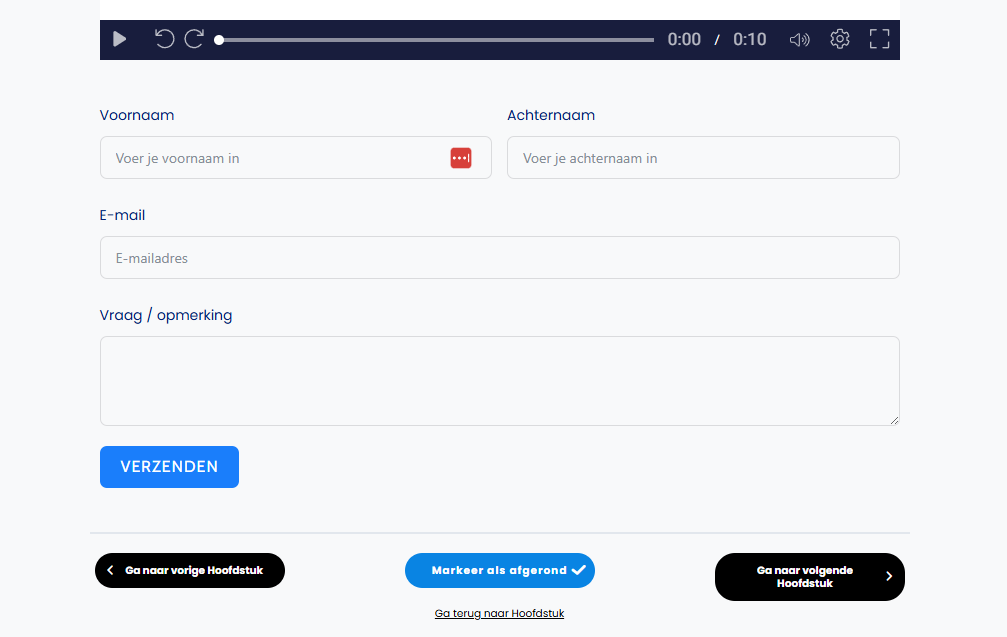 Heb je een video afgekeken, markeer deze dan als afgerond, dan pas kan je verder naar de volgende.